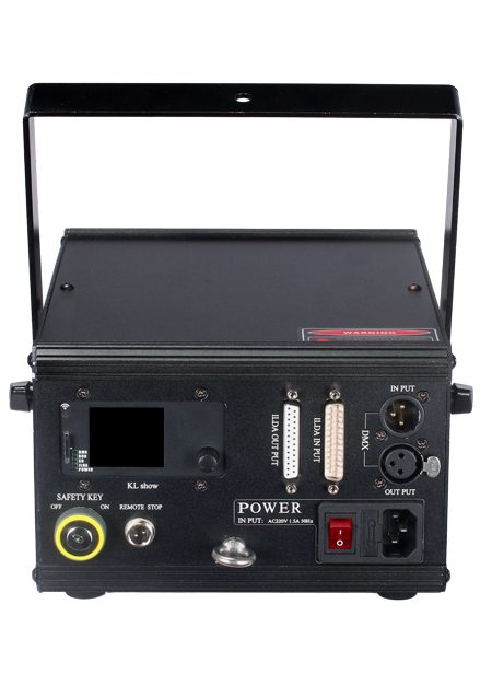 P5是一款模拟调制的纯二极管多彩RGB激光系统,保证输出功率为5瓦(也就是5,000毫瓦)。红色激光源输出功率为1.5瓦/638纳米,绿色为1.6/525纳米,蓝色输出功率为2瓦/455纳米。这些激光源确保了亮丽的颜色和强劲的激光束。这款激光灯具有出色的光束规格为6毫米乘2.5毫米(全⻆发散⻆1.6毫弧度)。它的振镜系统的扫描速度高达25kpps @ 8°。