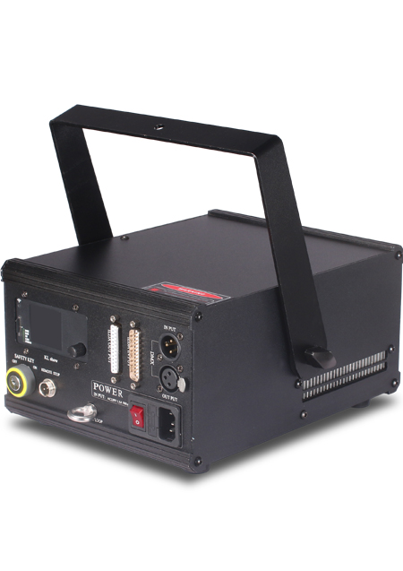 P5是一款模拟调制的纯二极管多彩RGB激光系统,保证输出功率为5瓦(也就是5,000毫瓦)。红色激光源输出功率为1.5瓦/638纳米,绿色为1.6/525纳米,蓝色输出功率为2瓦/455纳米。这些激光源确保了亮丽的颜色和强劲的激光束。这款激光灯具有出色的光束规格为6毫米乘2.5毫米(全⻆发散⻆1.6毫弧度)。它的振镜系统的扫描速度高达25kpps @ 8°。