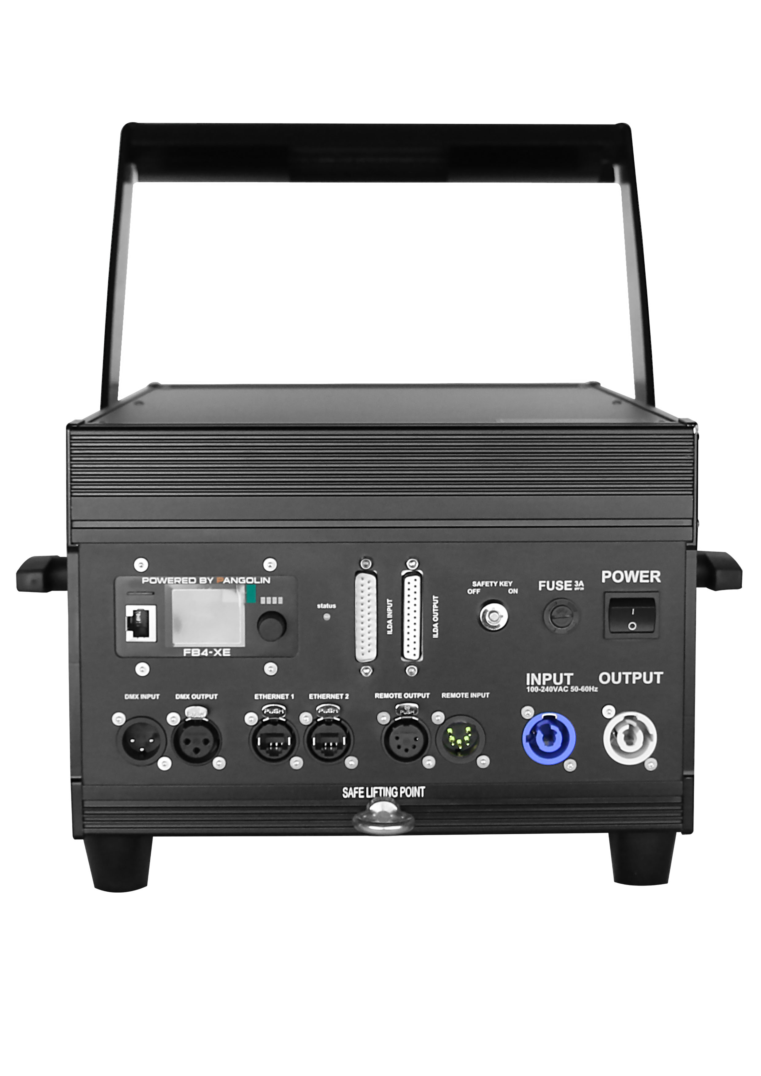 激光设备内部各板块分别配备独立电源供电提高电路稳定性。通过内置的 FB4 接口,CL24可提供多种控制选项,包括 ILDA、DMX以及通过Ethernet(以太网)进行的直接电脑控制(需使用 QuickShow 软件或 BEYOND 软件)。安全措施提供了欧标远程急停开关及物理光闸。